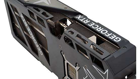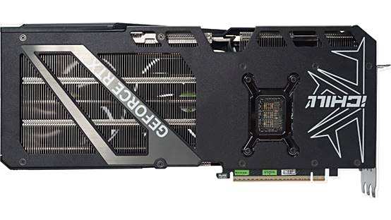 全金属背板之下带有3个大面积的散热开口,通过银色盖板进行分割。在显卡背板边缘处,额外增加了5个鳍片散热开孔,可更加高效且均匀的导出热量,增强散热效率。