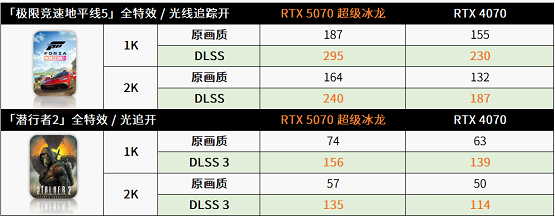 虽然原画质下,两张显卡差距不大,但从DLSS3开始,5070超级冰龙便是断层式领先,更不用说在DLSS4设置下性能还能更进一大步。